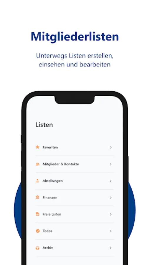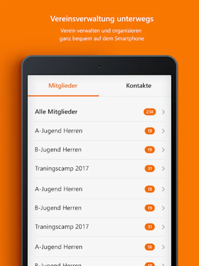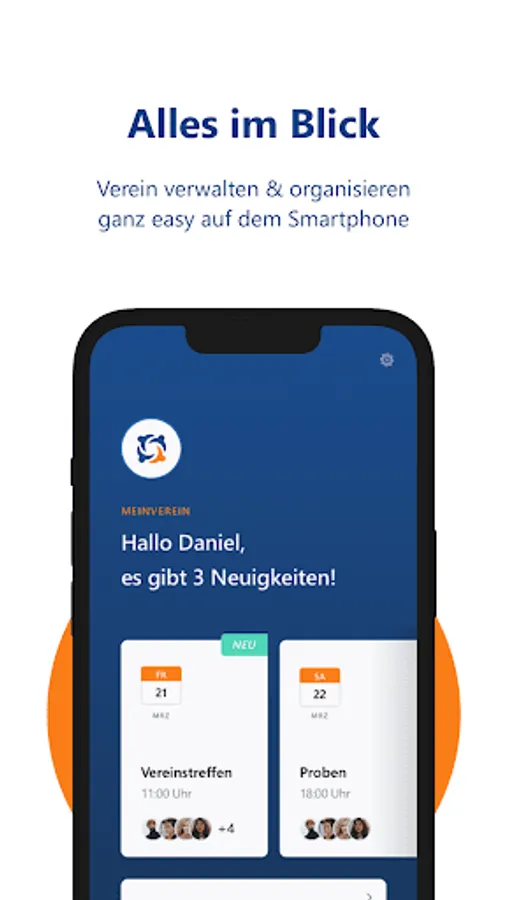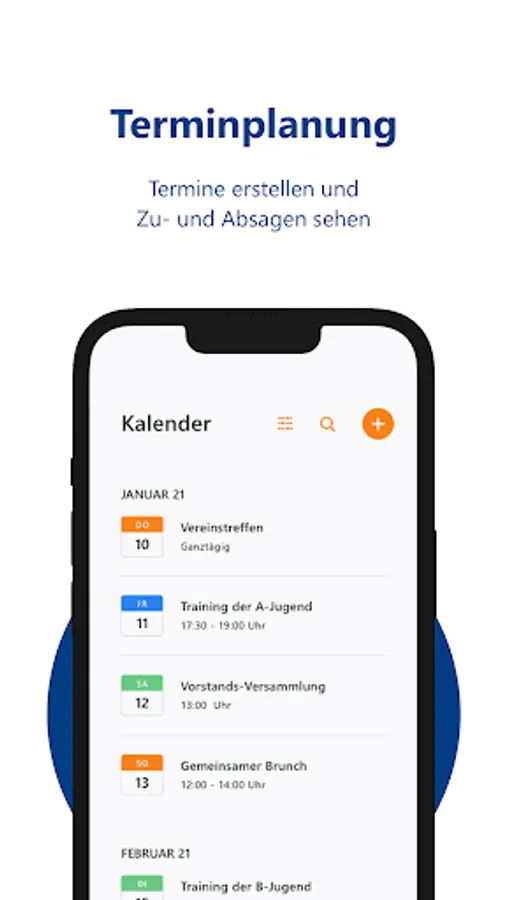 With the combined use of our MeinVerein web application (www.meinverein.de) and the mobile app, you can handle the daily tasks of your club in no time at all and integrate your members into the work of the club.