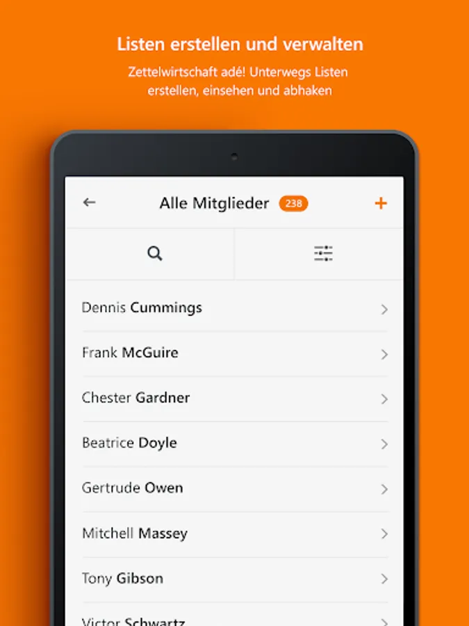 • Lists: Do you need to quickly check and edit the list of participants on the way to the club outing? No problem!