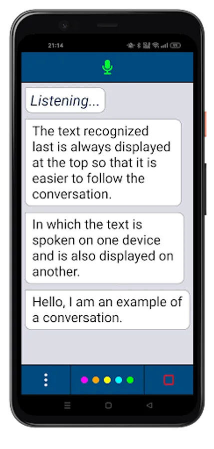 This app supports you in communicating with the deaf and hard of hearing. Every spoken word is recognized directly and displayed in text form on the screen. So it is now easier to communicate with each other with the help of your smartphone without any further tools.