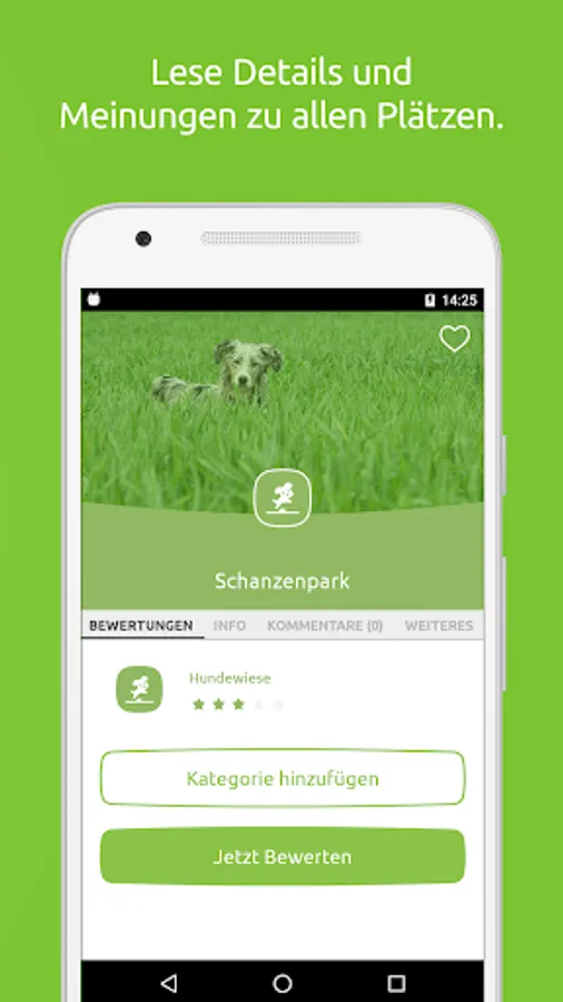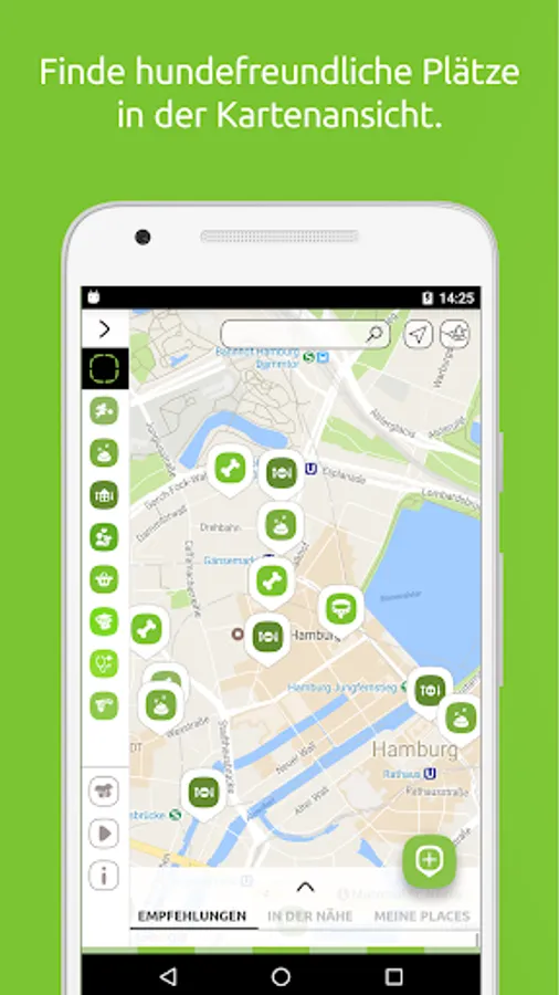 With Dog's Places, the dog app, you'll see at a glance pet friendly places near you! Whether beautiful dog park, dog-friendly restaurant or the nearest vet - the map, our smart lists and reviews of other dog owners show you the way!