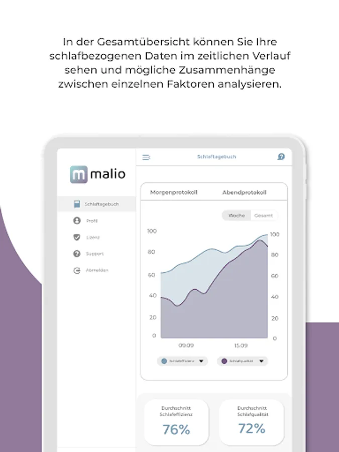 malio helps to document behavior related to sleep, track it over the long term, recognize patterns and discover irregularities.