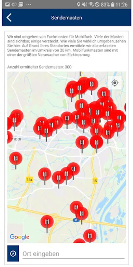- Mobile phone masks: At a glance you can see how many mobile phone masts are around you. You can also enter a location and search for cell towers around that location. The function is currently available for Germany, Austria and Switzerland.