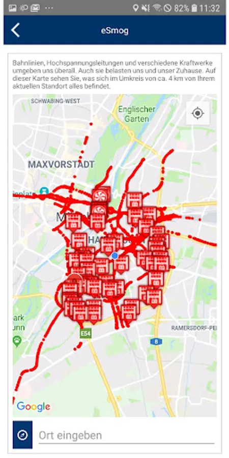 - eSmog burden: what still surrounds you? Railway lines, power plants and pylons can be found here in your immediate vicinity.