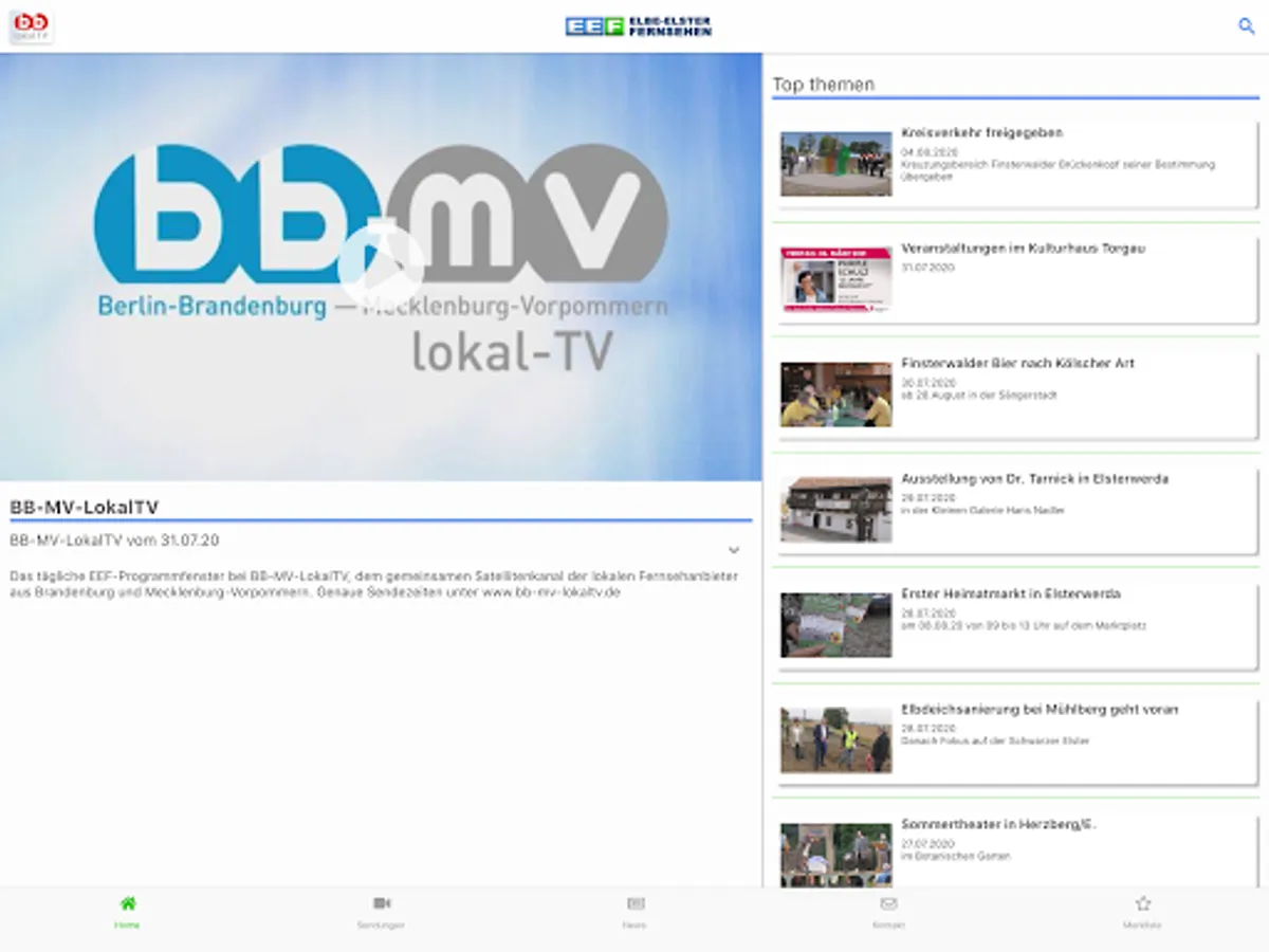 In BB-LokalTV you can favor your local program, add videos to your watch list for later and easily access programs from other regions.
