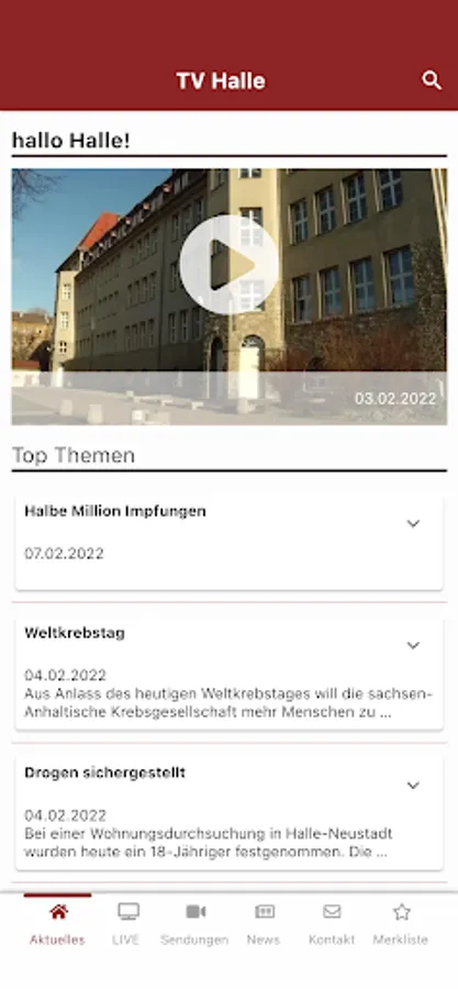 TV Halle is the first private television station in the city on the Saale. Currently, around 700,000 people in Halle, Leuna, Bad Dürrenberg, Salzmünde, Merseburg and other parts of the Saale district and the surrounding districts can receive our program technically.