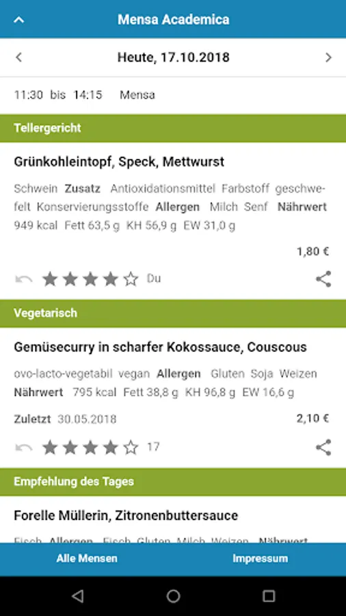 What comes to the plate or tray, we unfortunately can not influence. The data is taken directly from the websites of the dining halls. If you encounter once in an error, then just write us at info@mensaplan.de - we take care of it!