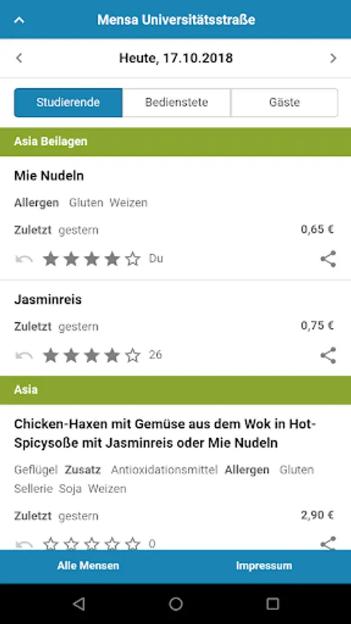 What comes to the plate or tray, we can not control unfortunately. The data are taken directly from the websites of the cafeterias. If it at once an error occurs, then we simply write to info@mensaplan.de - we take care of it!