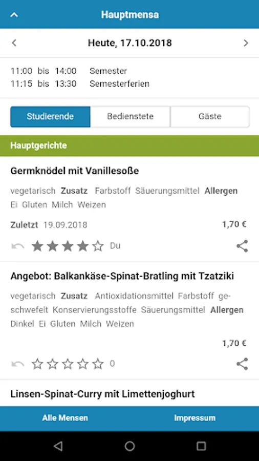 What comes to the plate or tray, we unfortunately can not influence. The data is taken directly from the websites of the dining halls. If you encounter once in an error, then just write us at info@mensaplan.de - we take care of it!