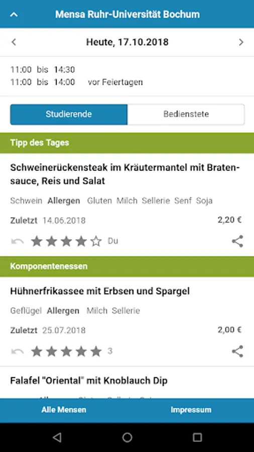 What comes to the plate or tray, we unfortunately can not influence. The data is taken directly from the websites of the dining halls. If you encounter once in an error, then just write us at info@mensaplan.de - we take care of it!