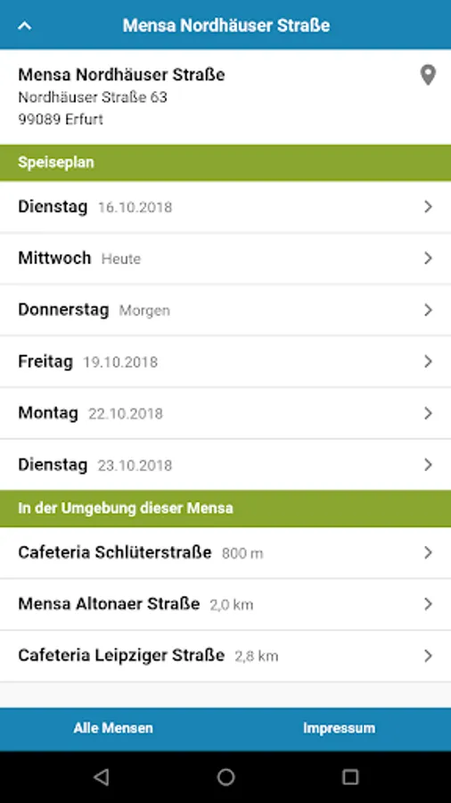 Clicking on the address of your Mensa opens the maps app for the shortest route for lunch on campus.