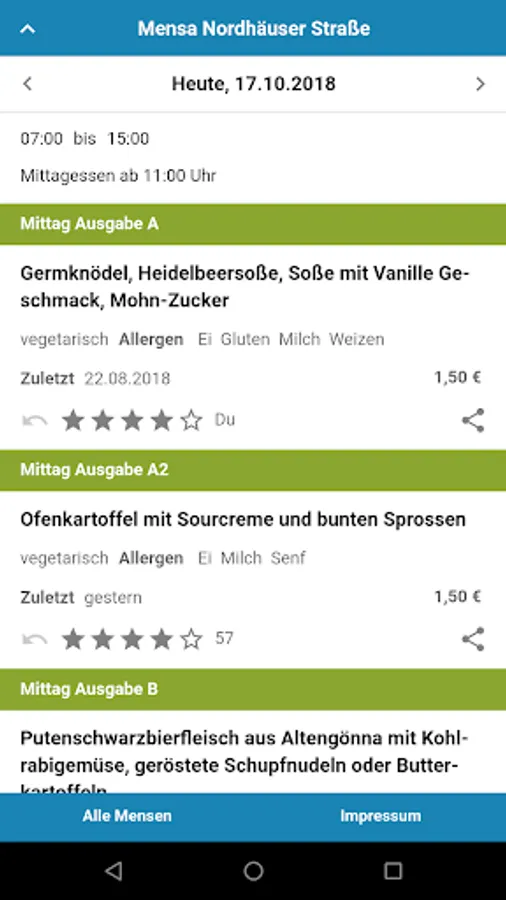 What comes to the plate or tray, we can not control unfortunately. The data are taken directly from the websites of the cafeterias. If it at once an error occurs, then we simply write to info@mensaplan.de - we take care of it!