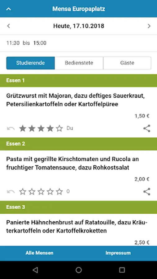 What comes to the plate or tray, we can not control unfortunately. The data are taken directly from the websites of the cafeterias. If it at once an error occurs, then we simply write to info@mensaplan.de - we take care of it!