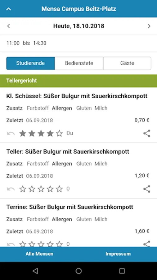 What comes to the plate or tray, we can not control unfortunately. The data are taken directly from the websites of the cafeterias. If it at once an error occurs, then we simply write to info@mensaplan.de - we take care of it!