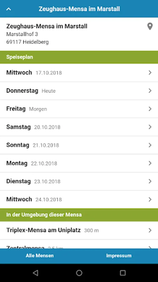 Clicking on the address of your Mensa opens the maps app for the shortest route for lunch on campus.