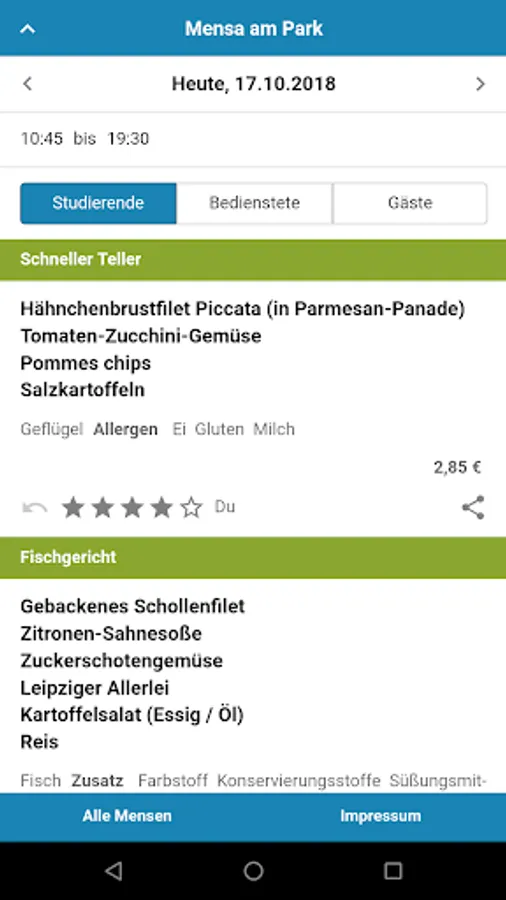 What comes to the plate or tray, we can not control unfortunately. The data are taken directly from the websites of the cafeterias. If it at once an error occurs, then we simply write to info@mensaplan.de - we take care of it!