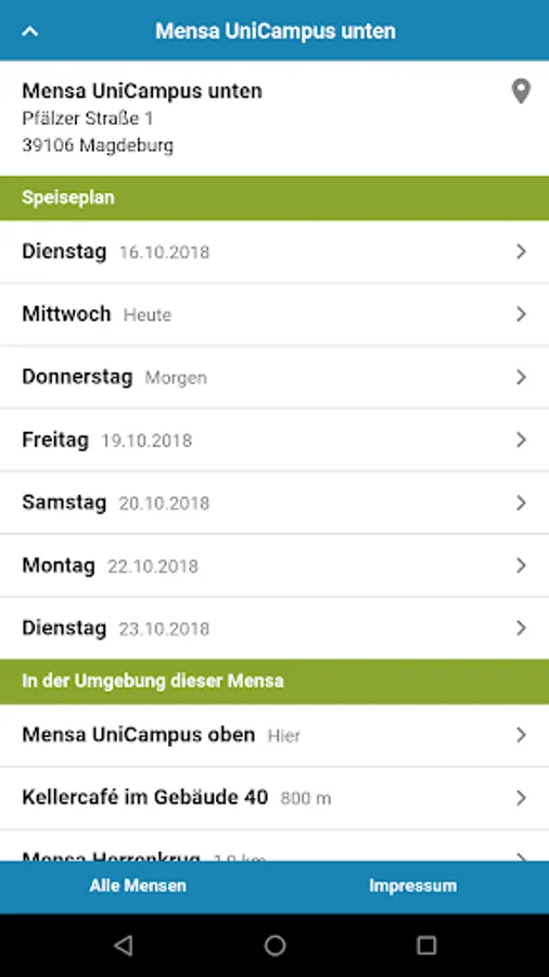 Clicking on the address of your Mensa opens the maps app for the shortest route for lunch on campus.