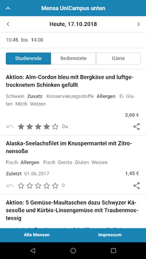 What comes to the plate or tray, we can not control unfortunately. The data are taken directly from the websites of the cafeterias. If it at once an error occurs, then we simply write to info@mensaplan.de - we take care of it!