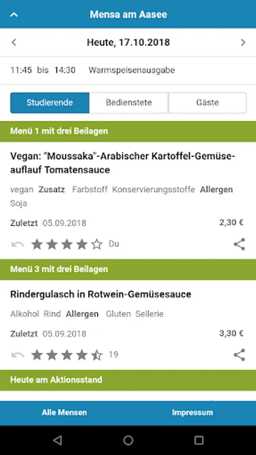 We monitor the menus of the refectories in Münster and Steinfurt regularly. All changes are permanently transferred to your smartphone.