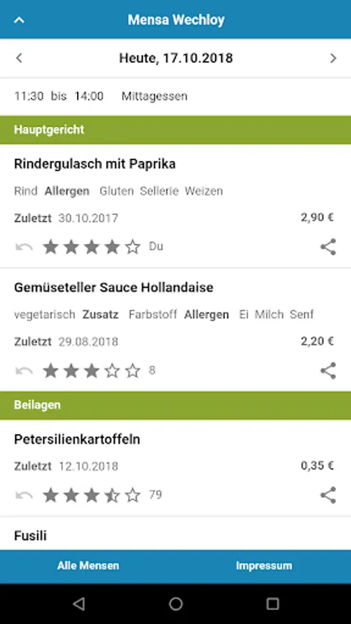 What comes to the plate or tray, we unfortunately can not influence. The data is taken directly from the websites of the dining halls. If you encounter once in an error, then just write us at info@mensaplan.de - we take care of it!