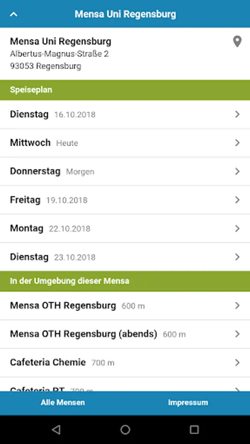 As soon as the data is available, you can already see the menu of the whole week.
