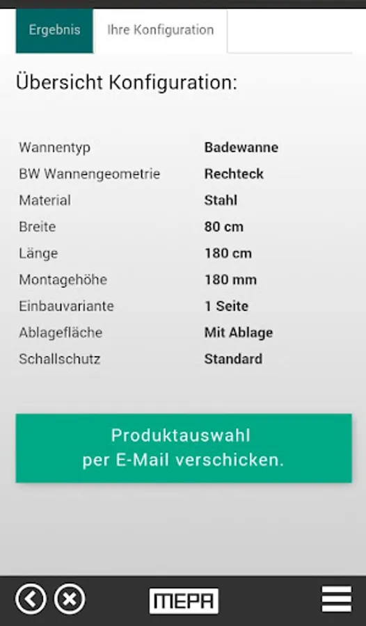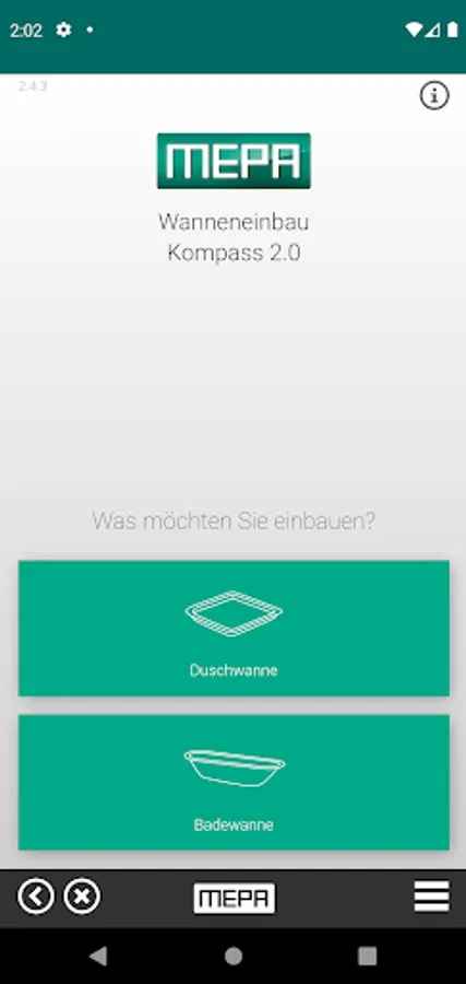 The bathtub installation compass 2.0 helps with the professional installation of shower trays and bathtubs. In day-to-day work, several different products and components are required, depending on the type and material of the tub and the specific installation situation. The use of coordinated MEPA quality products offers a high level of security - especially in terms of stability, soundproofing and sealing. In just a few configuration steps, the bathtub installation compass 2.0 can be used to determine the right assembly components. You will find out which tub feet or mounting frames are required, which products (tub anchors or tub strips) must be used to support the tub edge, which components (anti-droning mats or soundproofing tapes) are required for sound insulation and which variant of the Aquaproof tub sealing tape is permanently watertight Joint execution is made possible. Of course, the bathtub compass 2.0 works offline. In this way, a product recommendation can be made directly at the construction site - without any internet reception.