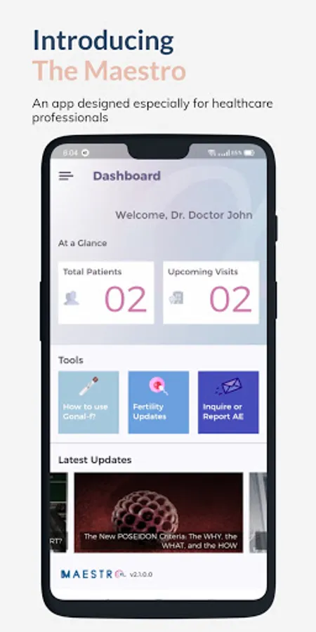 The Maestro App is an easy tool to utilize the biomarkers in the individualization for the starting dose of FSH in IVF & OI cycles and provides easy access to the different stimulation protocols in interactive way and also it is your gate for check & review the most recent updates in the reproductive health.