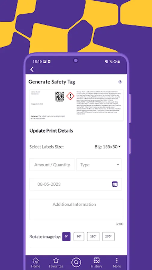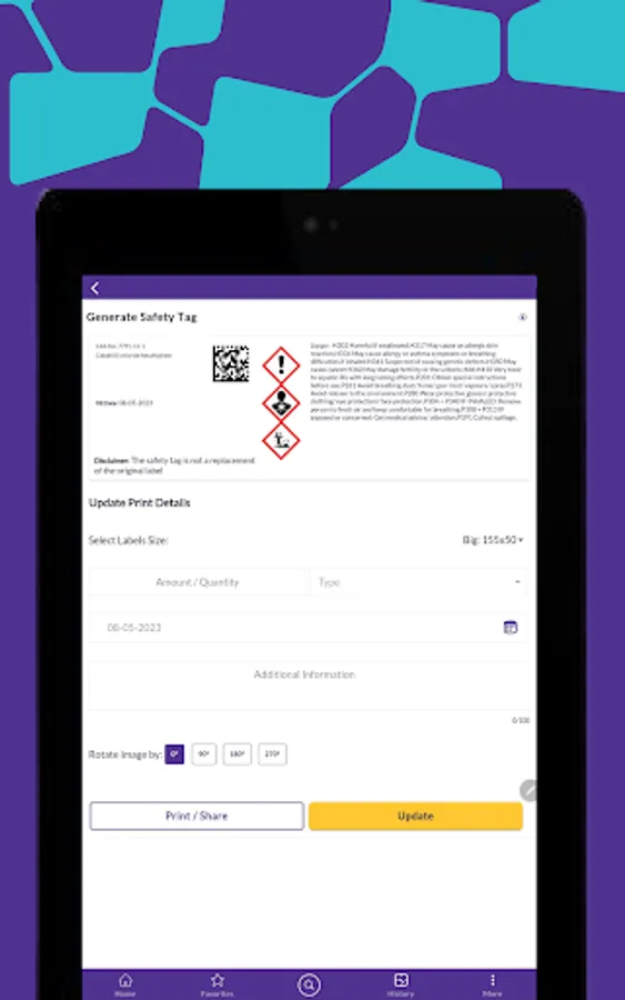 You can easily print and share own safety tags - including local language and regulations. For printing you can directly connect My M Safety with smart printers via WIFI.