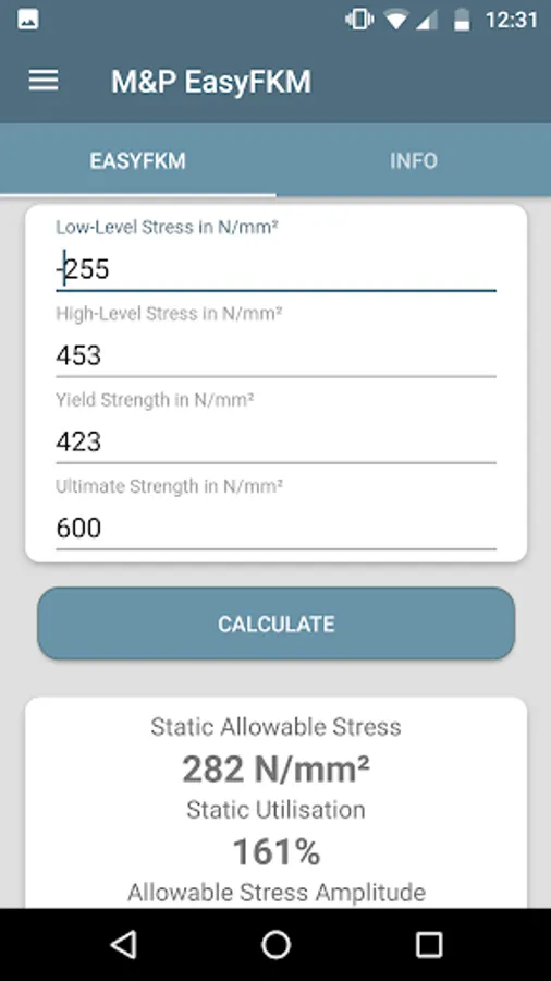 This tool can be used to easily perfom a basic strength reliability test for mechanical engineering parts based on a simplified version of the FKM guidelines.