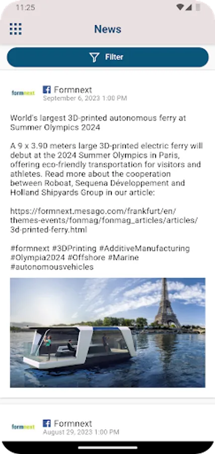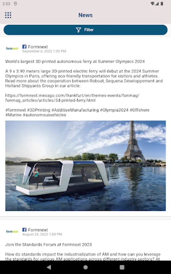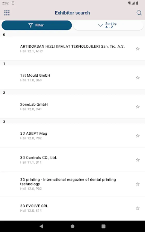 Exhibitors: search for companies and products, filter and sort functions available. Add Photos and Notes to an exhibitor and share them.