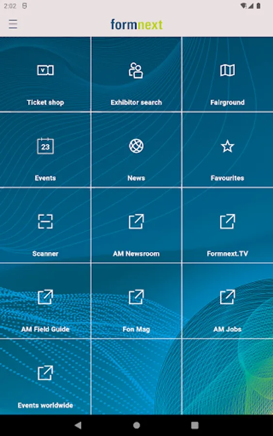 The app menu allows you to customise your settings regarding the app analysing, find opening times and further information on travelling to Messe Frankfurt, as well as privacy policy and terms of use.