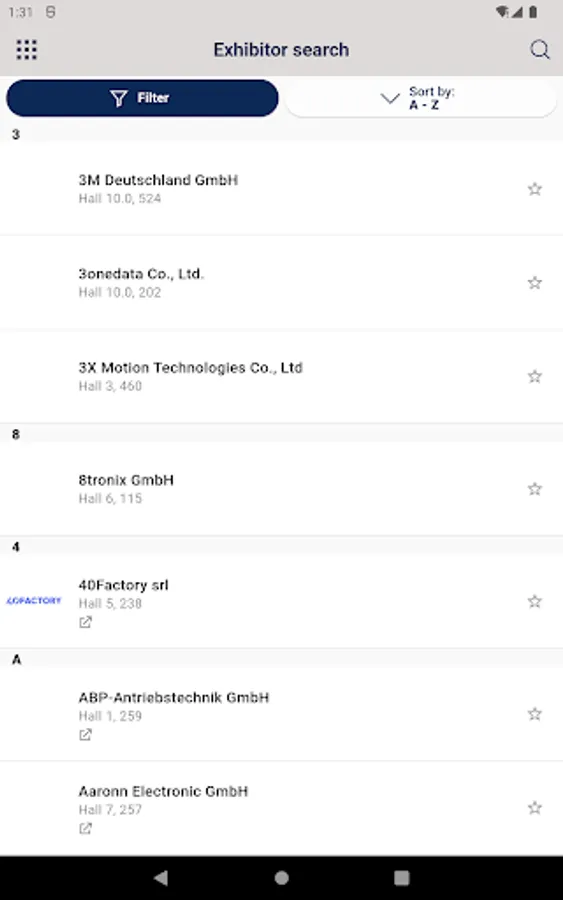 - Possibility to mark exhibitors as visited to keep track of your schedule.