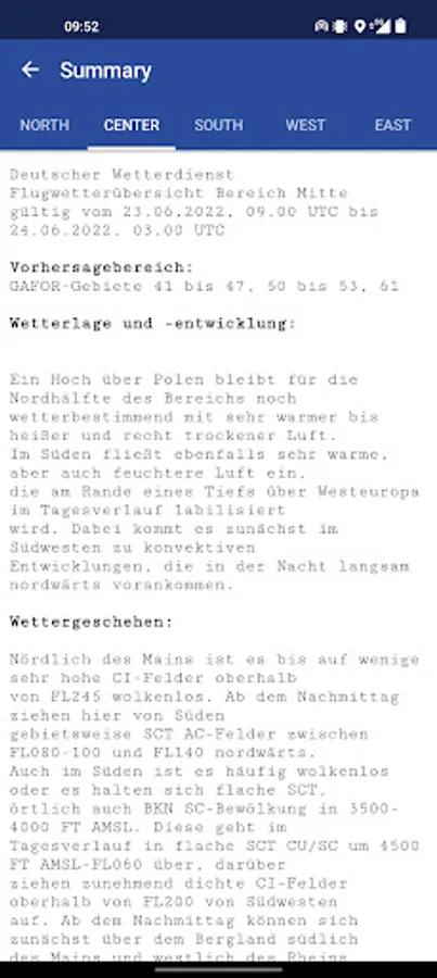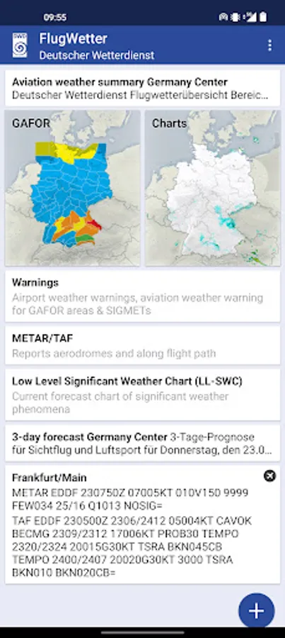 o GAFOR area warnings: aviation weather warnings for GAFOR areas in Germany.