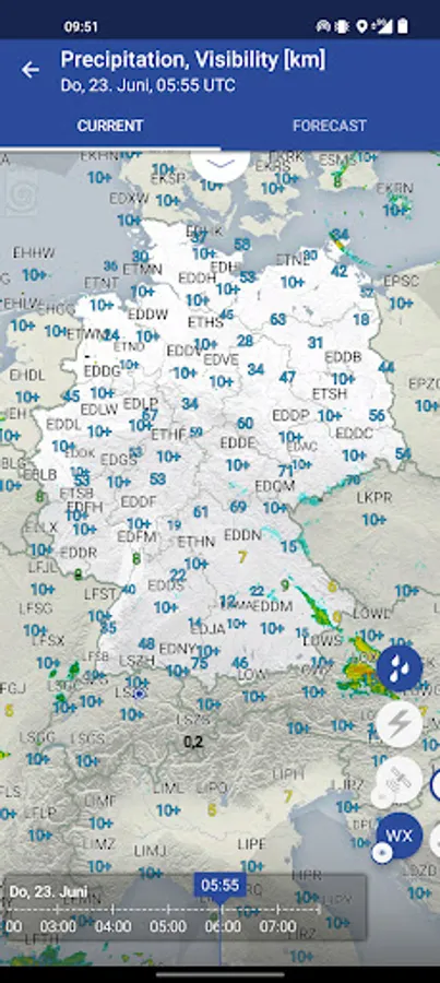 The DWD FlugWetter-App is exclusively available for the closed user group “Aviation/pc_met Internet Service” and can only be used in combination with a pc_met Internet Service licence which is subject to a fee. The login and password of the pc_met Internet Service www.flugwetter.de are to be used as access data.