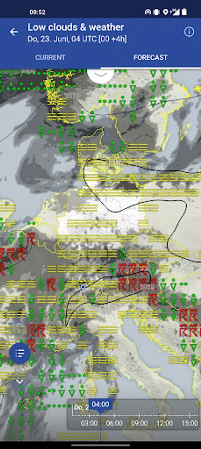 - WAWFOR model forecasts (World Aviation Weather Forecast) based on the DWD forecast model ICON-EU for area Europe, for a forecast time range up to +48 hours. The following parameters are available in map display: