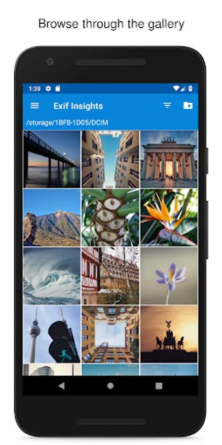 You can select any folders on your device. I.e. you can analyze the photos taken with your internal camera, or you can choose a folder which contains photos downloaded from your compact camera, DSLR, MILC.