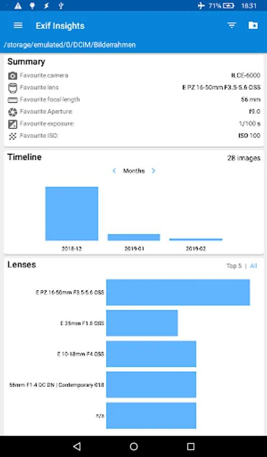 Wonder if you should invest into a new ultra wide angle or prime lens? Use this app to find out how much you used that focal length in the past!