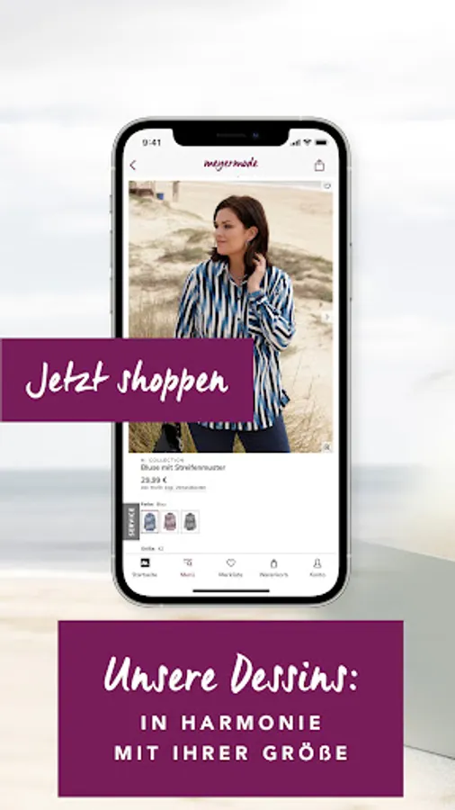 With the Meyermode app you can immerse yourself in our inspiring world of fashion, anytime and anywhere. Discover our plus size brands from 42-66. We only select the brands that can convince you with selected size competence and quality. This applies in particular to our »m.collection« brand, whose fashionable variety and individuality we want to inspire you again and again!