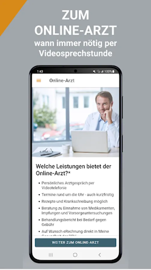 Do you have comprehensive health insurance from the DBV? Then organize everything to do with health for yourself and other insured persons conveniently and without paper: The free app bundles our services for you easily and securely on the move – so that you can actively manage your health online. No matter when, no matter where.