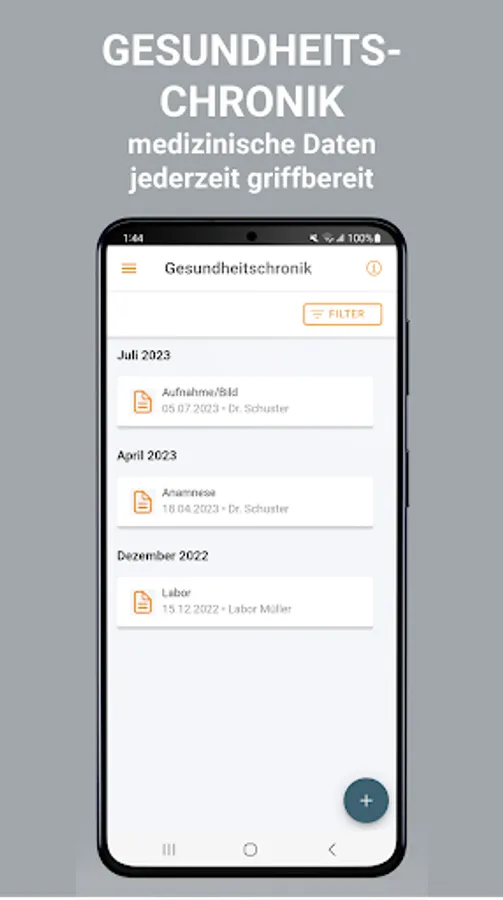 - Store medical documents such as doctor's letters, findings, laboratory values, anamnesis forms, etc. in your digital health chronicle and access them at any time