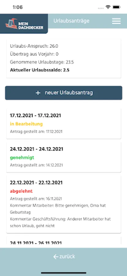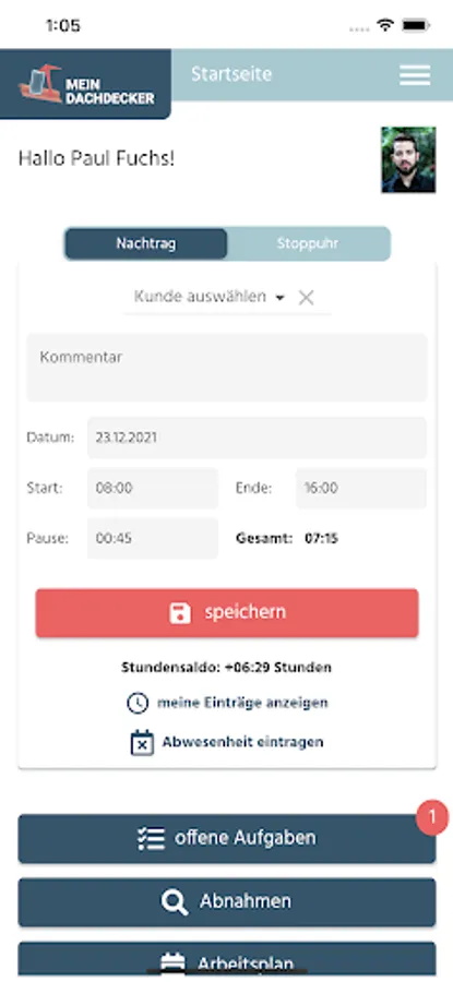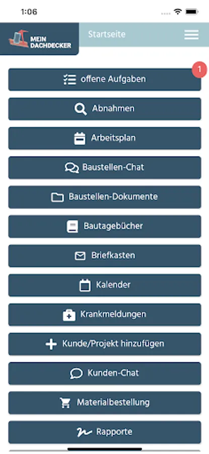 The app is equipped with the following functions (each function can be deactivated in the management system for your company):