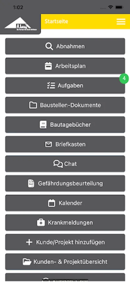 The app is equipped with the following functions (each function can be deactivated in the management system for your company):