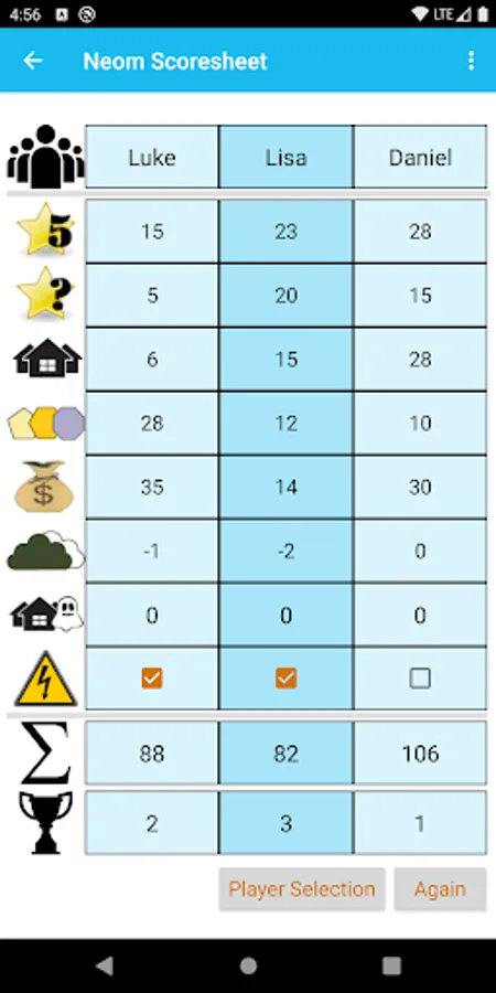 The app "Neom Scoresheet" provides a digital scoresheet to calculate the results of your Neom matches. It also enables you to manage the players, view previously played matches and also delivers some simple statistical analysis of the played matches.