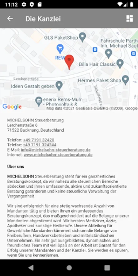 Of course, with this app you always have a direct line to the law firm. All contact details including convenient directions are available there. If you don't have your phone number or email address at hand, just look it up in the app.