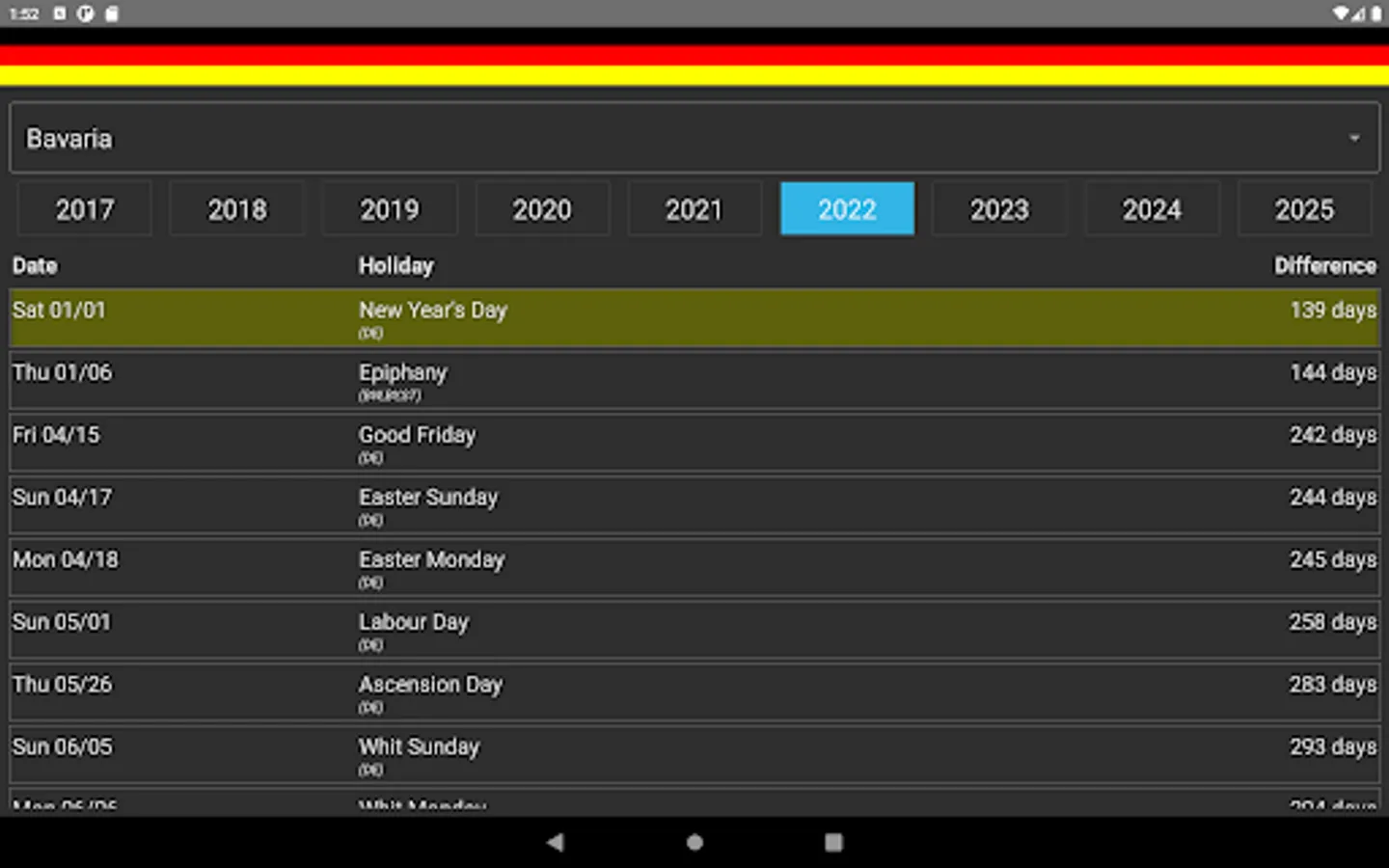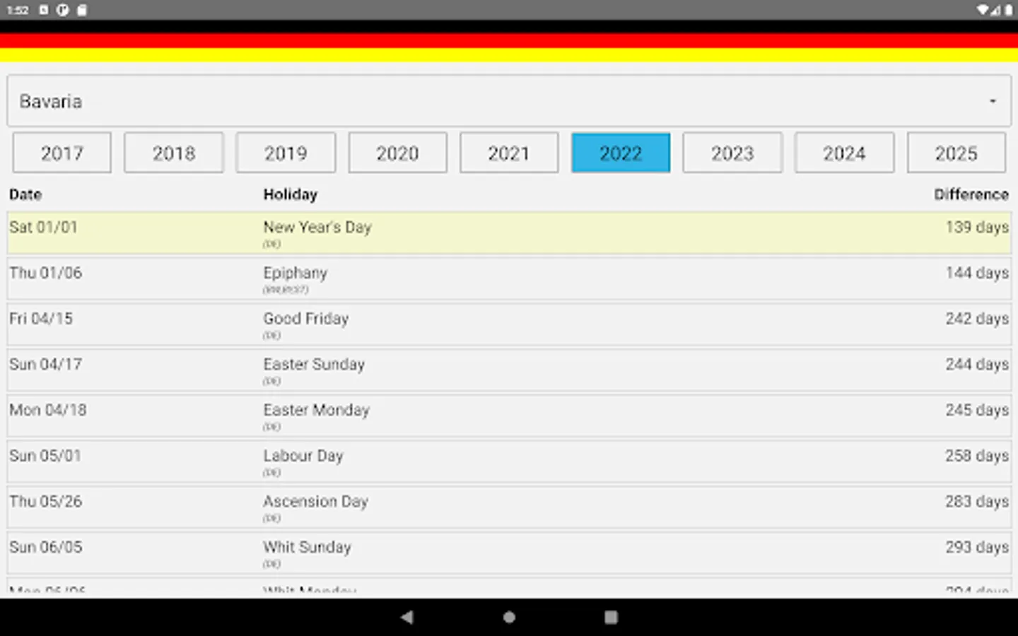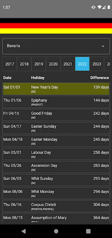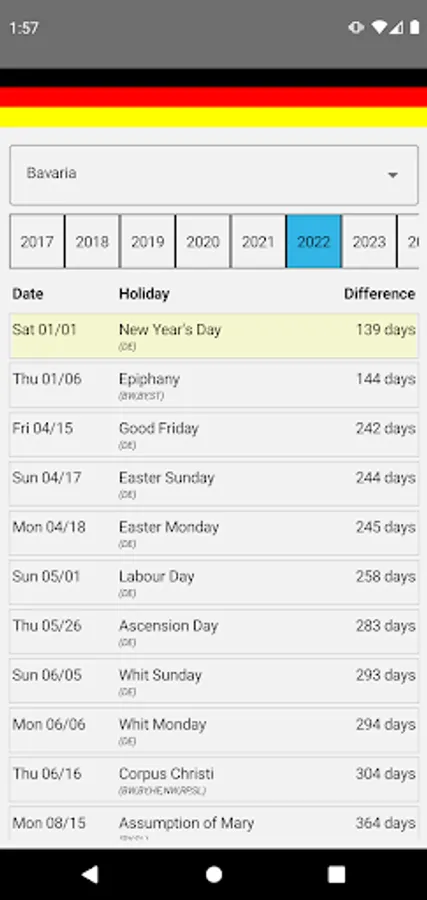 DeuFeiTage shows the holidays for the states of Germany.