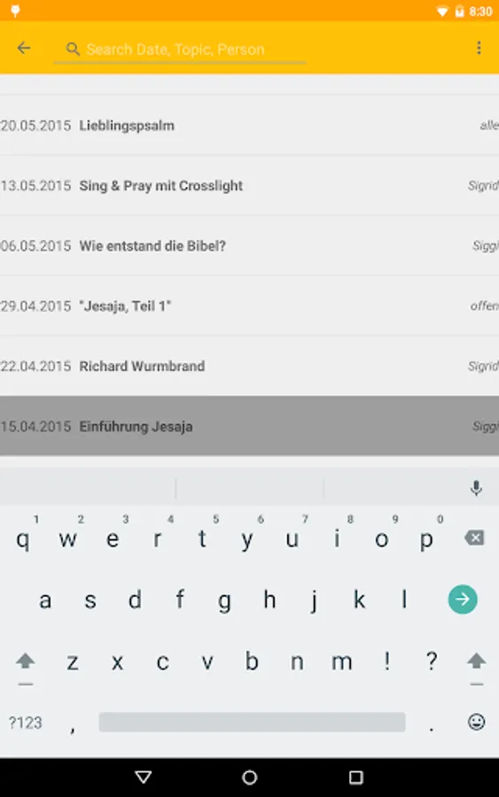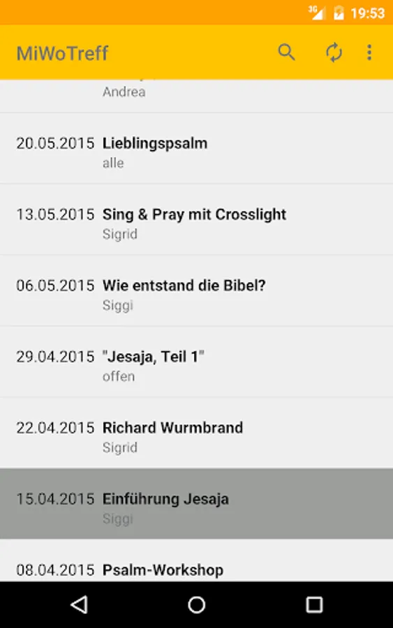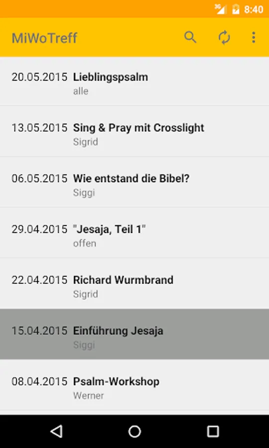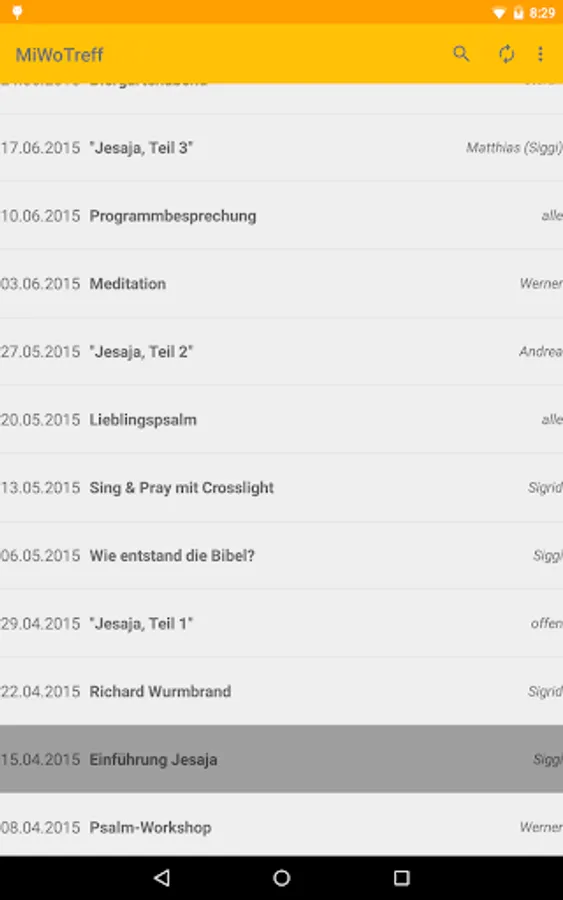 MiWoTreff is an app for showing and searching the program of "Mittwochstreff der Evangelischen Gemeinschaft Bogenhausen, Munich".