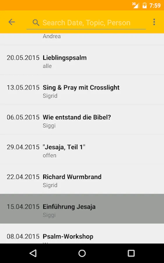 With MiWoTreff you can see the program of the Mittwochstreff, you can search for date, topic or person and you can sync the events with the calendar.