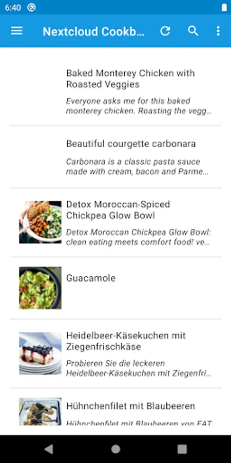 This app is a viewer for recipes in Nextcloud App. You need another app (e.g. the Nextcloud Android client) to sync the recipes to your Android device.