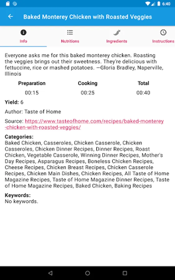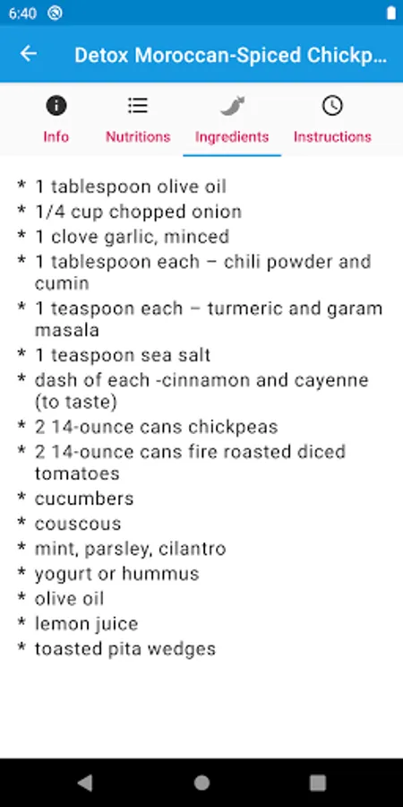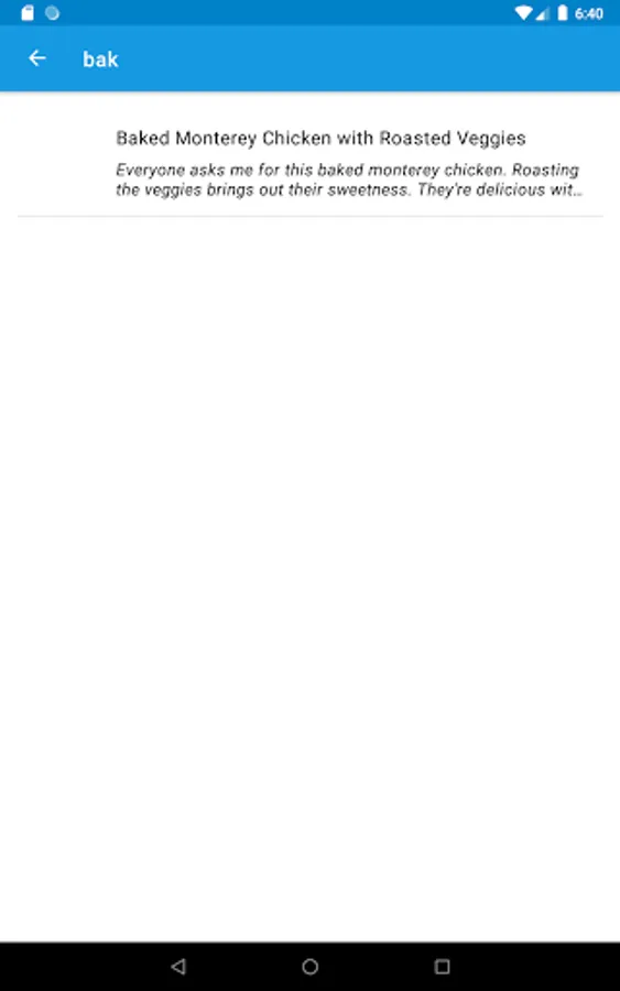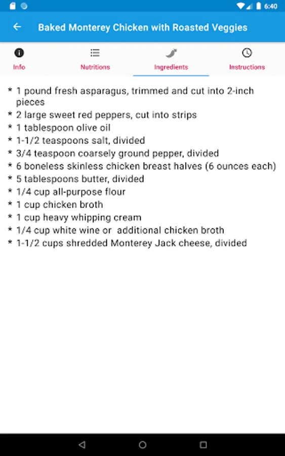 After that, the start view has a list of recipes and you select a recipe to view the details.