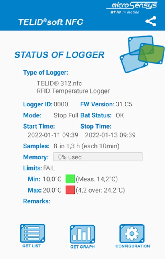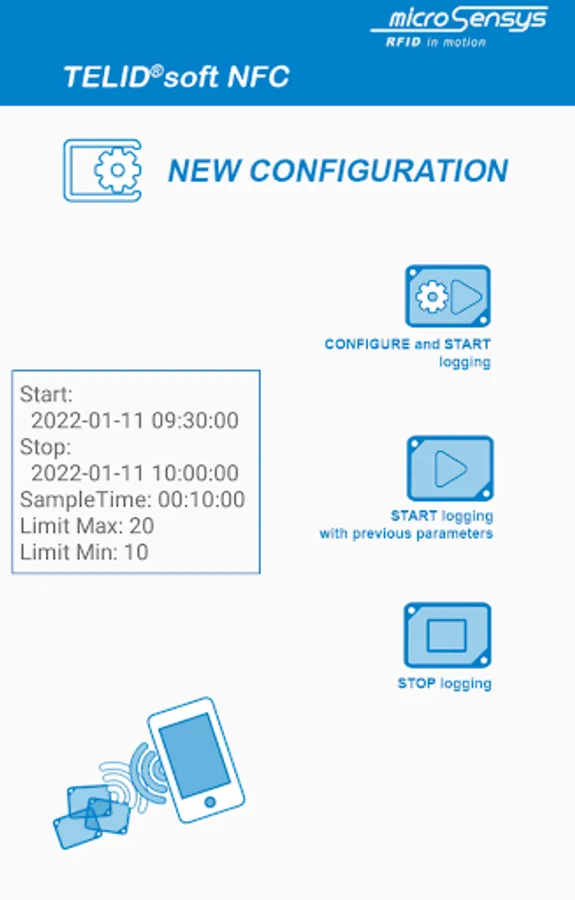 A system solution consisting of Android App for smartphones with integrated NFC interface as well as additional support for stationary PCs allows a flexible handling of the data logger in mobile processes up to extended programming and evaluation functions on the desktop.