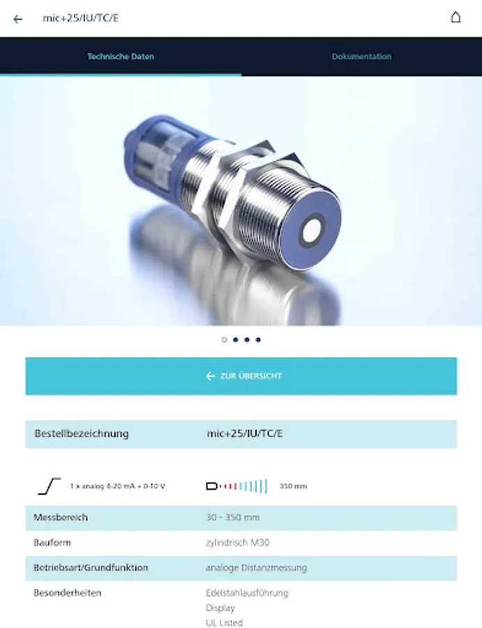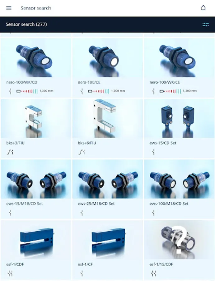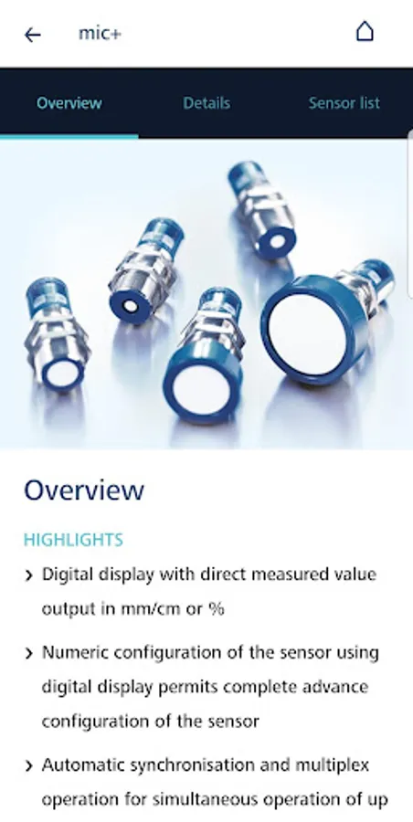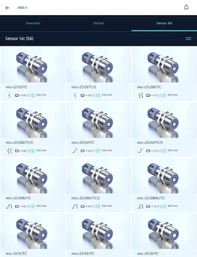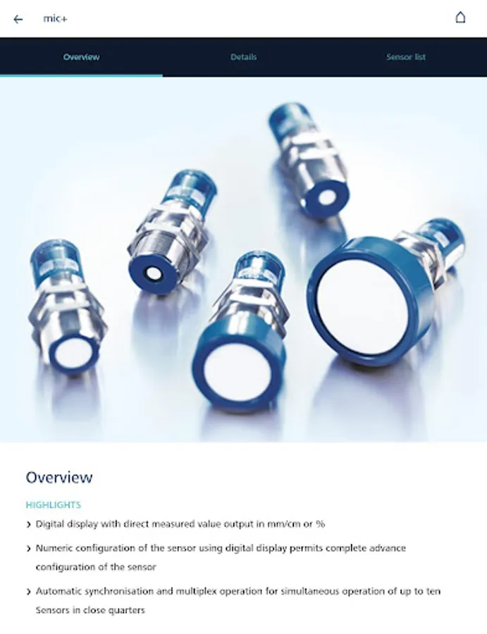 Choose directly your appropriate ultrasonic sensors for your application or select with filter settings at the sensor search your sensor from the whole sensor program. The app provides detailed sensor information and users manuals.